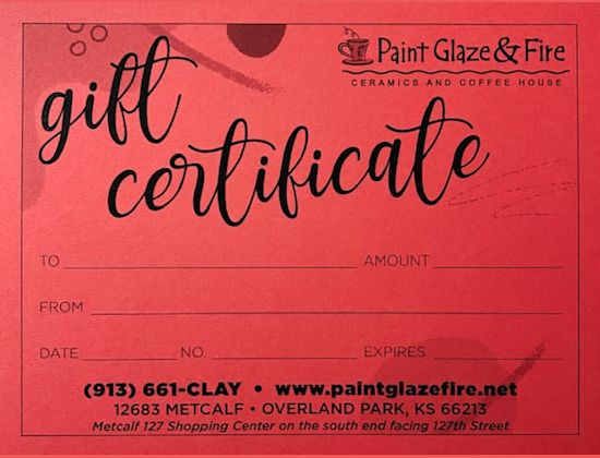 Paint Glaze & Fire gift cards can be used for any of our offerings: